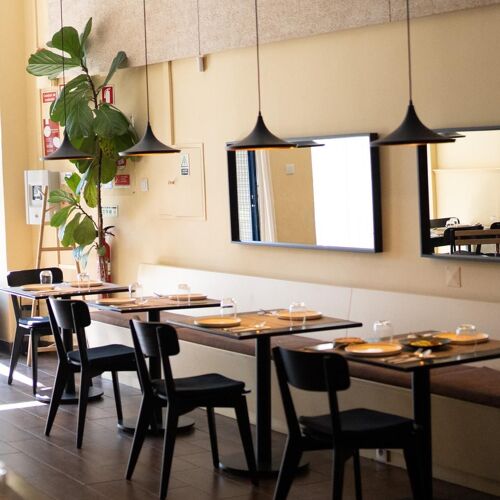 At Patio 44, you’ll be pleasantly surprised by the quality of ingredients used as well as the discreet and simple façade. This project was created by three friends, with chefs Simão Soares and Alfonso Ramos in charge of the kitchen – a partnership that developed from experience working together in a previous restaurant. Their cuisine is centred around traditional Portuguese cuisine enhanced by modern techniques and unique flavours. Standout dishes include the cod “punheta” with crunchy rice, followed by a vegetarian option (tofu and mushrooms with a mouthwatering demi-glace) and an impressive fresh cod prepared with a smooth chickpea purée. To finish, we highly recommend the spectacular “pão de ló” sponge cake fresh out of the oven, served with goat’s cheese ice-cream. The reasonable prices here are another pleasant surprise!
