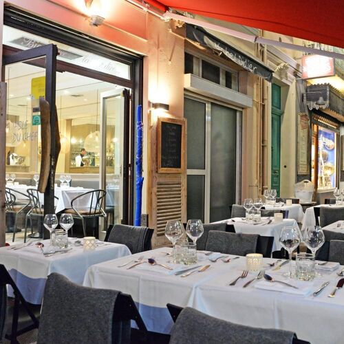 Only open in the evenings, this small bistro just two minutes from Rue d’Antibes never disappoints. In an open kitchen, a youthful chef works with local, seasonal produce, crafting subtle, tasty dishes, such as his knockout velvety carrot soup with star anise and lightly seared shrimp. Market availability dictates the contents of the “Surprise” menu which is great value for money… Booking recommended.