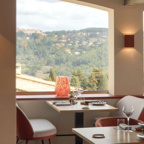 This family-run hotel and restaurant in a scenic Provençal village, boasts a warm, colourful interior (open kitchen, sanded beams, Italian tableware) and a panoramic view over the vineyards of Bandol. The regularly changing menu draws on the flavours of the Mediterranean, taking diners on a journey that hugs the coastline from Liguria to Provence: chilled red mullet à la niçoise, bouillabaisse dressing; ravioli of foie gras, cappuccino-style duck stock and seasonal mushrooms; seabream, tian of vegetables and a saffron jus. A fine dining experience to be savoured.