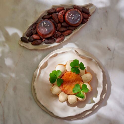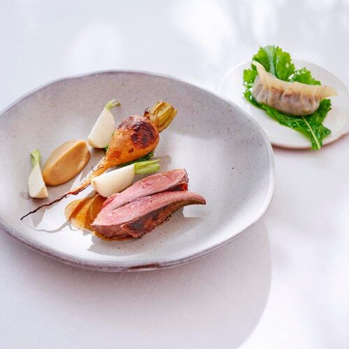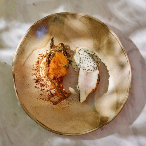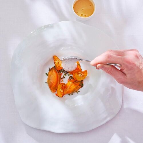 Hélène Darroze fell in love with the Château La Coste, adding her own stamp to a genuine holistic work of art that showcases contemporary art and wine, on the doorstep of Lubéron. Deep in Provence, the chef has chosen to focus on fruit and vegetables: carrots and aubergines from Bruno Cayron, cherries from Florent Lazare and each dish is named after its producer. The result is delicate food, made with exceptional produce that is exquisitely yet simply presented. The menu also features a few of the recipes that have contributed to the success of this world-famous chef from southwest France, such as Gamberoni in tandoori spices or the Darroze Armagnac baba.