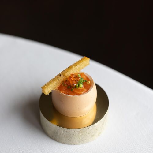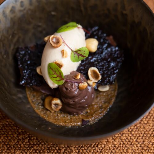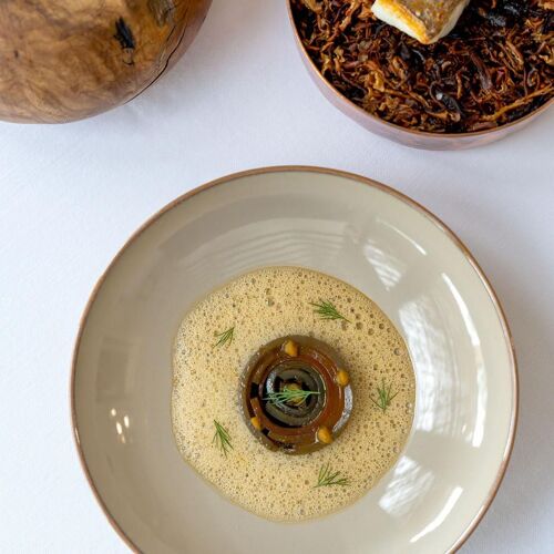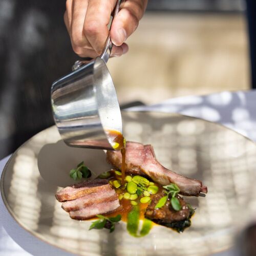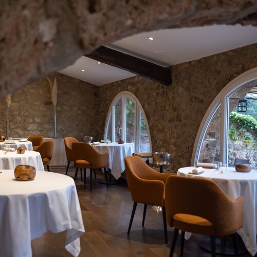 Nestling amid the greenery, this gorgeous 16C bastide looks out over the Massif des Maures and the picturesque village of Arc-sur-Argens. The son of restaurateurs from the South-West, Sébastien Sanjou has set up shop in the Var, where his early endeavours were supported by Jacques Maximin and Alain Ducasse. This native of Tarbes is savvily making the Mediterranean terroir his own, cultivating, for example, an exceptional partnership with market gardener Philippe Auda. Wonderfully ripe and juicy tomatoes, served with a basil sorbet and burrata and seasoned with olive oil and Baume de Bouteville vinegar, make for a fantastically sunny starter. This is typical of his cuisine: colourful and imaginative, with, at the heart of each dish, a wonderful ingredient that has been carefully prepared with respect for its original flavour.