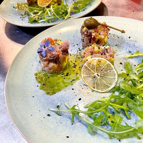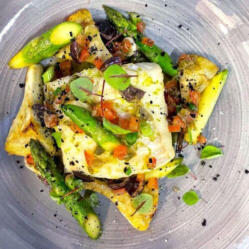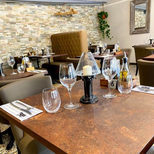 A stone's throw from the sea and the Jean Cocteau Museum, this eatery calls to mind a family home complete with a kids’ play area. The score stars Gallic classics and Provençal and Italian favourites. Examples: caramelised upside-down tomato pie, shoulder of confit lamb and lemon pavlova.