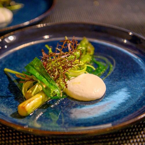 Originally from Nice, the chef moved back to the region with his Breton wife after several stints abroad. He showcases local ingredients in knockout recipes, inspired by the sea and the mountains: pissaladière-style wafer-thin tart with roast black pudding, braised chuck veal with creamy chickpeas and a chocolate and hazelnut praline pie to finish.