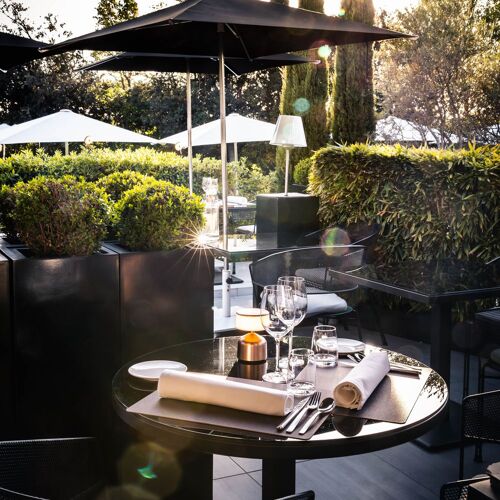 What a pleasure it is to take a seat in this establishment where you are welcomed naturally and simply by a Burgundian family. In this charming restaurant, the chef concocts subtle and delicate dishes, sprinkled with Provençal innuendo. The patio, next to the swimming pool and surrounded by Mediterranean vegetation, invites you to slow down and take things easy. An oasis of peace and charm.