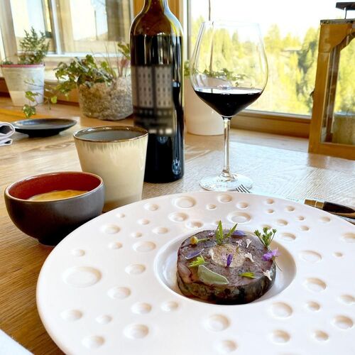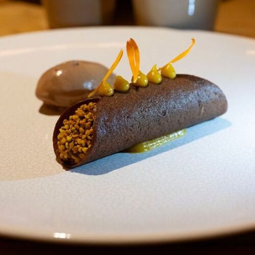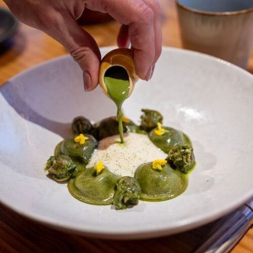 At the Col de la Couillole, a pass in the Mercantour National Park, this former refuge run by Pauline and Christophe Billau is a top destination for foodies. These two serve up a warm welcome and a single set menu that draws inspiration from the mountains and changes with the seasons. Diners can indulge in creamy local mountain nettle cappuccino, superb roasted white asparagus, whether tangy with candied citrus fruit or in a sabayon sauce, or lightly smoked Mediterranean tuna served confit-style and subtly counterbalanced by the herbal notes of oxalis. Dishes such as veal from the Plateau de Longon accompanied by confit shallots and a courgette flower filled with pine nuts and a herb cream are brimming with skilfully mastered flavours, while the cheeses are carefully matured. There's nothing superfluous or artificial about this place! A few prettily decorated guestrooms are up for grabs for overnight stays.