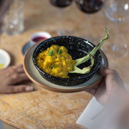 The concept of ‘country cooking’ is anything but trivial! It is, perhaps, a little surprising to find two brothers and wine experts Héctor and Pablo Durigutti at the helm, both of whom had the clear idea of focusing their efforts on fine dining as the perfect complement to their unique microcosmos at Finca Victoria, a family-run winery with two charming guest houses. The restaurant itself, located just a few metres from the winery’s HQ and totally surrounded by vineyards, is set in an elegant glass cube with a thatched roof and takes its name from the different types of soil found on the property. They offer several menus: 'Criollo' and 'Parrales' (both discontinued), 'Albedrío', the so-called '5 Suelos' and another, more exclusive, called 'Historia' (14 courses). The latter is served in a private room (Mesa del Enólogo) and also features an astute wine pairing that explores the evolution of wine from Antiquity to its arrival in Argentina, and then to its expansion as a result of the country’s immigrant community. Guests are usually welcomed at the clay oven, with empanadas and a glass of wine!