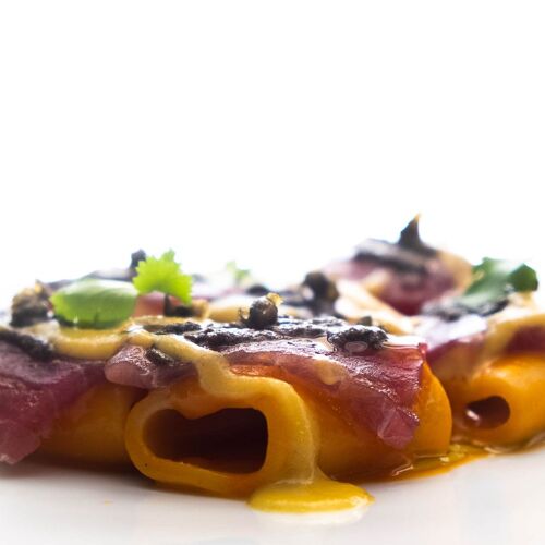 Enjoy delicious updated regional cuisine made from carefully chosen ingredients at this restaurant, where all the vegetables are sourced from the property’s own kitchen garden just a few kilometres from the village. Dishes are showcased on various tasting menus and an à la carte, and feature options such as pecorino cheese and potato tartare with a chimichurri sauce (a typical green sauce from Argentina), and paccheri pasta cooked al dente with a sauce made from two types of tomato, raw red tuna and fried capers. Enthusiasm and modesty are the key characteristics of the chef at this restaurant, which also offers a warm welcome and excellent service.
