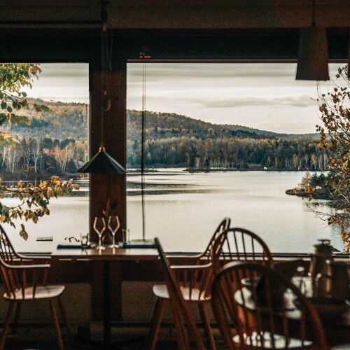 Located near La Mauricie National Park, on the shores of Lake Bellemare, this country inn surrounded by forest would not be out of place on a postcard. From inside the inviting dining room, decorated with recycled materials to create a rustic chalet atmosphere, the view of the lake is magnificent. Chef Samy Benabed crafts locavore yet open-minded cuisine: his aesthetically pleasing dishes feature everything from barbecued items and preserved foods inspired by time spent in Scandinavia (lacto-fermentation, dehydration, etc.) to Quebec spices and citrus fruits…it all comes together harmoniously. A case in point is the venison tartare with wasabi mayonnaise, lacto-fermented red currants, capers, kale and nori. Simple food and a small deli counter are available at Le Comptoir. This Auberge is an ideal place to recharge your batteries and has a dozen cozy guestrooms (most with a view of the lake).