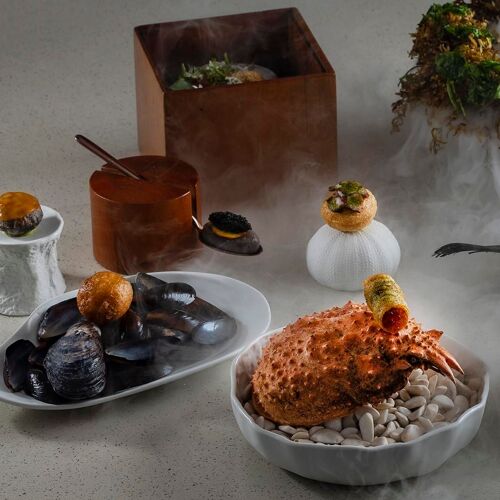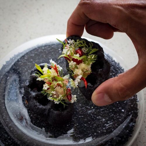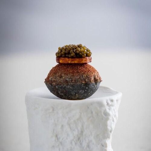 Nestled inside the Azul Beach Resort, Le Chique headed by Chef Jonatán Gómez Luna, presents a thoroughly charming experience. The space, service, and presentation all display a high polish, and there is a distinct theatrical sense that lends an air of special occasion to this spot. The tasting menu spans Mexico's regions, showing a clear sense of style and personality while consistently impressing with creativity, excellent ingredients, strong technique, and impactful flavors. A fruit and foie gras salad nestled in an orange or a huitlacoche-stuffed donut with poblano and epazote sauce are just some of the first bites that set the meal off on a luxurious start. A dazzling array of seafood arrives in style, followed by heartier compositions and a lengthy procession of sweets.