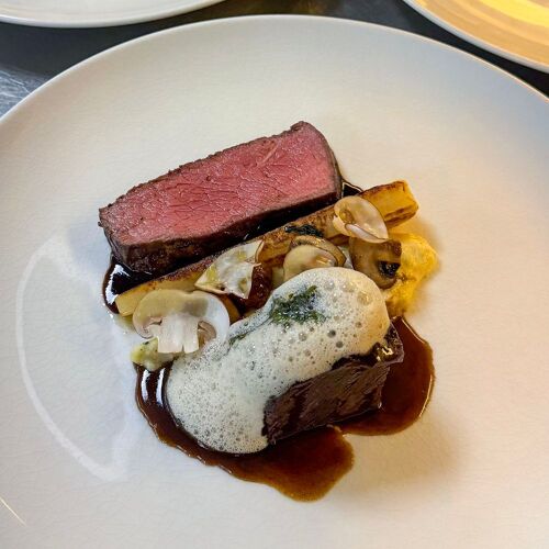 In this lovingly renovated former castle brewery, nowadays the name of the game is good, fresh cuisine. In an appealing setting featuring exposed brickwork, vaulted ceilings and modern interior design, the service is friendly. The cuisine has a regional dimension but also incorporates international influences. Among the dishes on the menu are Rhön brown trout, Angus beef flank steak and seasonal specialities such as locally hunted venison. Hearty flavours and expert craftsmanship are showcased in the tender venison ragout with deliciously spiced red cabbage.