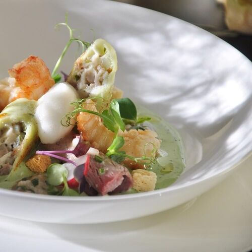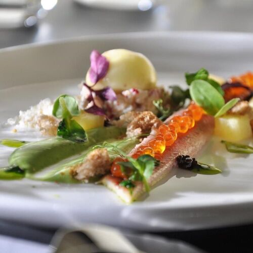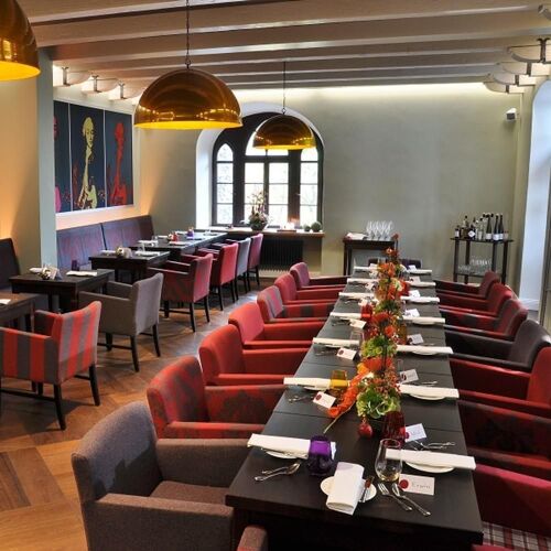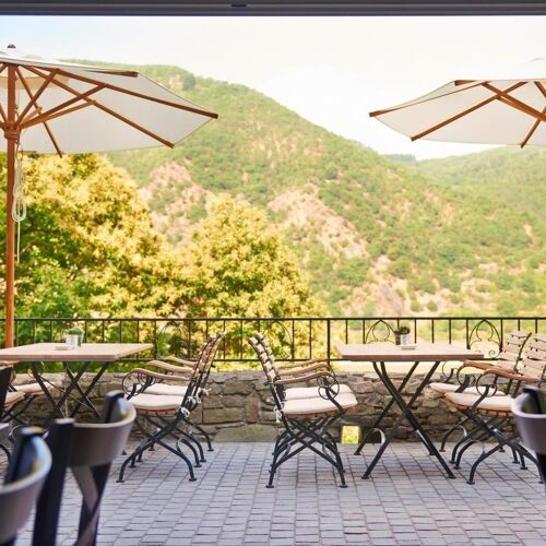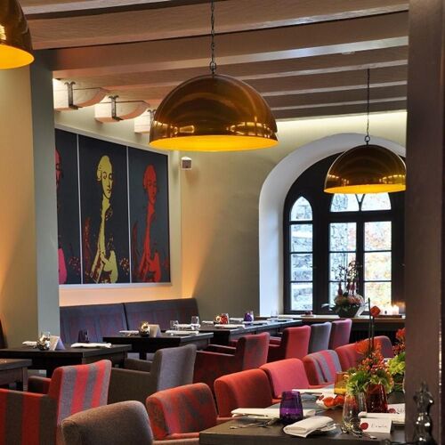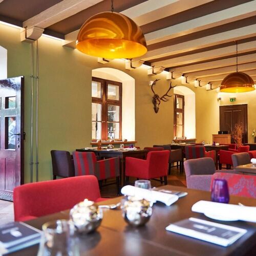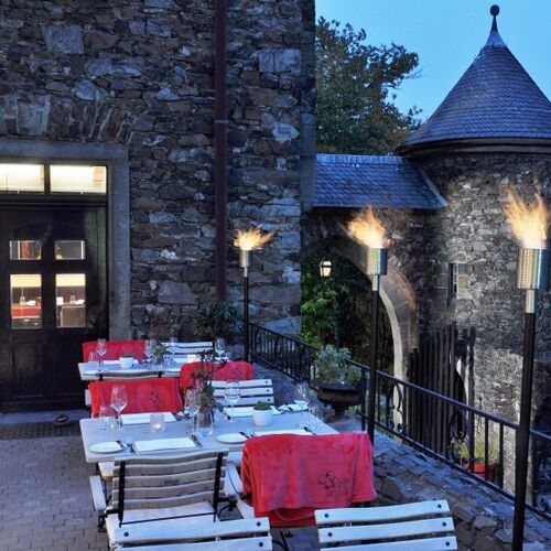 The location in the old castle ruins is glorious, and the view of the Rhine is spectacular – best enjoyed from the terrace. Inside, floor-to-ceiling windows frame the scenery beautifully. The kitchen takes its cue from the changing seasons and region, showcasing produce such as organic veal and venison from Oberheimbach, salmon trout from the Wisper Valley, zander from Lake Laach and vegetables and herbs from the castle's own garden. Alongside an excellent à la carte selection, there’s a choice of two set menus – one larger, one smaller. The wine list highlights local estates, including the castle’s own wine from its surrounding slopes. Burg Reichenstein hotel offers attractive, individually decorated guestrooms. Tip: Regular events are held here. A visit to the castle museum is definitely worthwhile.