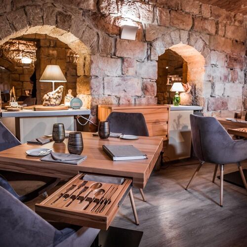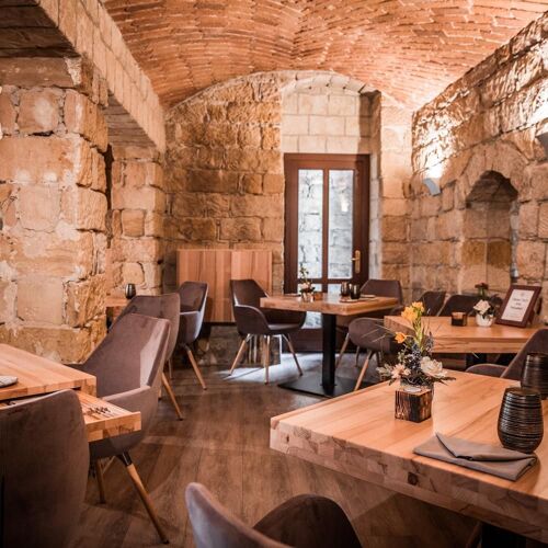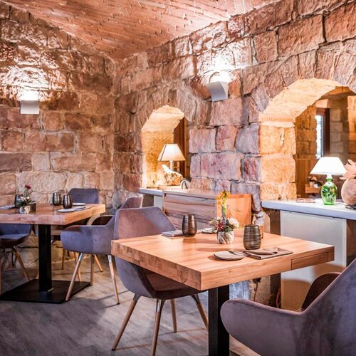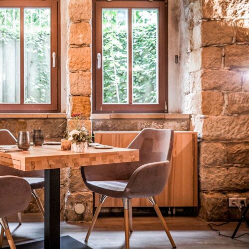 Fourteen steps lead you down to this friendly, cosy cellar restaurant in a beautiful old villa in Neustadt, where sandstone walls and brick vaults make for a special setting. In a wonderfully informal atmosphere, brother-and-sister team Marcus and Nicole Blonkowski serve interesting, modern and creative cuisine prepared using top-quality produce – and the value for money is hard to beat! There is a nicely curated à la carte selection, but you can also opt to give the kitchen team free rein to put together a surprise menu for you. The wine list features labels from eastern Germany exclusively, and they have made a point of including some lesser-known ones. This place also boasts a delightful terrace.