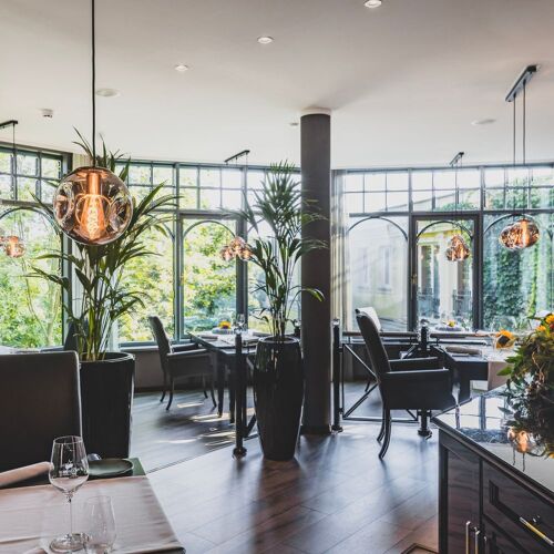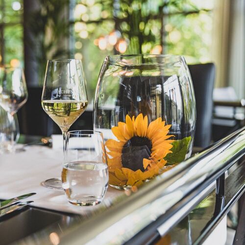 This fine dining restaurant of the wellness hotel BEI SCHUMANN is aptly named, starting with a plush interior done out in chic lilac and black tones and including carefully chosen details such as amethysts and Swarovski crystals. Then there is the modern and creative cuisine, which also draws on more classic culinary traditions – this is the domain of Tobias Heldt. The five to nine courses on the menu include dishes such as "Lamb 'Marrakesh', chickpea, paprika" and "Halibut, edamame, umeboshi plum". And it would be remiss not to mention the exquisite pâtisserie. Another feel-good factor makes the experience complete: the extremely friendly and professional service team, headed up by Patrick Grunewald, who will also share their competent insights when it comes to wine. Tip: there is an extensive champagne selection!