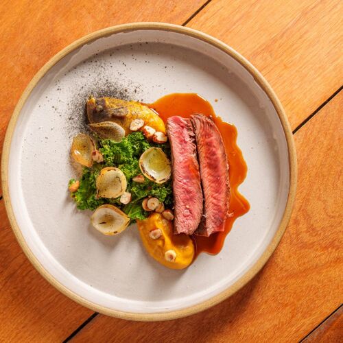 Young chefs Júlia Tricate and Gabriel Coelho already have impressive CVs, having won TV food competitions and worked in Michelin-starred restaurants such as Noma (Copenhagen) and Oro (Rio de Janeiro). Following on from these incredible experiences, they decided to open their own restaurant with an open kitchen and a discreet decor that helps to channel the complete focus onto their cuisine. Their modern culinary vision is showcased on a creative menu that champions fresh, seasonal ingredients on a tasting menu, à la carte and midweek “executive” menu”. Combinations such as the pork rib cooked for 12 hours and served with a meat glaze hummus and fried onion, and the restaurant’s classic take on hump of beef, here accompanied by a creamy sweet potato and gorgonzola purée, will definitely leave a lasting memory of this restaurant.