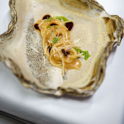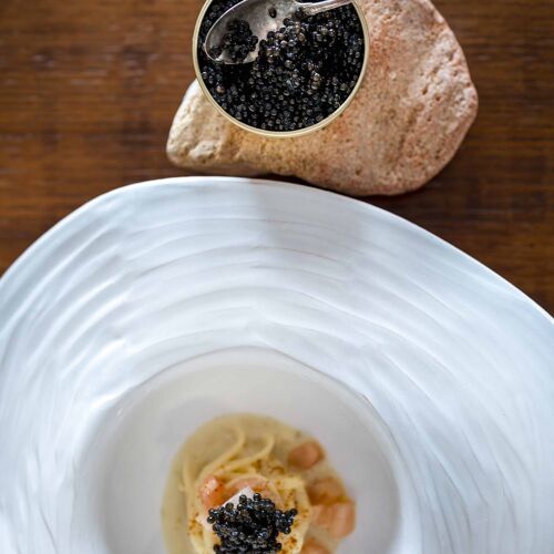 Just a stone’s throw from the seafront promenade in the historic centre of Alghero, this small gem run by Gian Luca Chessa offers the best of Sardinia. The cuisine is showcased on different tasting menus, including Rivoluzione (creative yet with a regional focus); Radici (vegetables take centre stage); Riviera (local fish); and Cortile (traditionally inspired dishes). We particularly enjoyed the gnocchi stuffed with sheep’s ricotta cheese, beetroot sauce and Sardinian scorzone truffle – a real treat! All the wines are available by the glass, so don’t hesitate to ask the sommelier for recommendations.