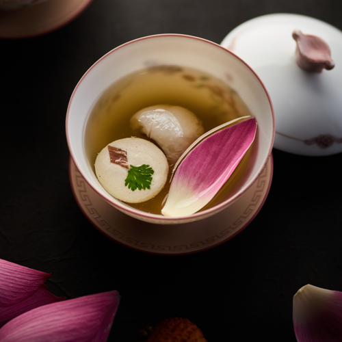 The story of 102 House started in a residential home in Foshan, Guangdong. The kitchen is helmed by a chef with around 20 years of experience. For diners to experience the quintessence of traditional Cantonese banquets, various set menus are offered. Items change seasonally, but his signature sweet and sour pork is always available, featuring the cut between loin and belly for the perfect texture, alongside house-made fruit vinegar.