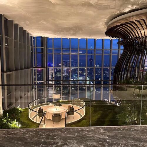 Sitting atop a skyscraper, this aptly named restaurant boasts high ceiling and commands breathtaking river views. Open for afternoon tea and dinner only, it serves Western classics like beef steaks dry-aged in-house. But it’s the chef’s menu melding Chinese ingredients with European techniques that truly surprises. Try deep-fried seaweed meatballs with runny crab roe and vinegar centres, and Chocolate Trio styled after Shanghainese retro snacks.