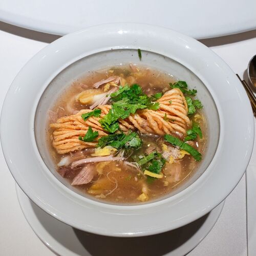 Brace yourself for nostalgia aplenty: velvet tufted chairs, walls covered in vintage blue bricks, art pieces from around the world…Most ingredients are shipped from Anhui, including mouldy tofu – a speciality you can’t miss. Wine-scented fermented mandarin fish is another classic slightly adapted to suit the local palate. The Anhui-style braised pork trotter in soybean paste is cooked in a 30-year-old marinade for exceptional depth and layered flavours. On top of the à la carte menu, you can also have one tailored in advanced.