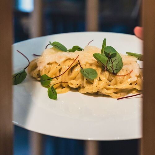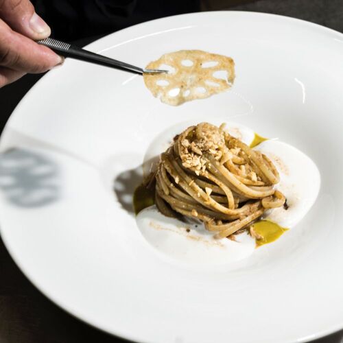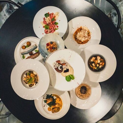 In the baroque heart of the city, this small restaurant – comprising two dining rooms, one overlooking the bell tower of the Basilica Collegiata dei Santi Apostoli Pietro e Paolo, the other more intimate – welcomes guests with a contemporary style and cozy atmosphere. Chef Salvo, drawing on international experience alongside Giorgio Locatelli, has returned to his roots to offer a modern, bold cuisine through both an à la carte menu and two tasting itineraries. Dishes such as “Ti Porto alle Bahamas” and “Mai-Thai” reflect his travels with striking, distinctive flavors. To then end the meal with a smile thanks to the playful “tiratisù.” Here, you are not simply clients, but guests.