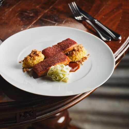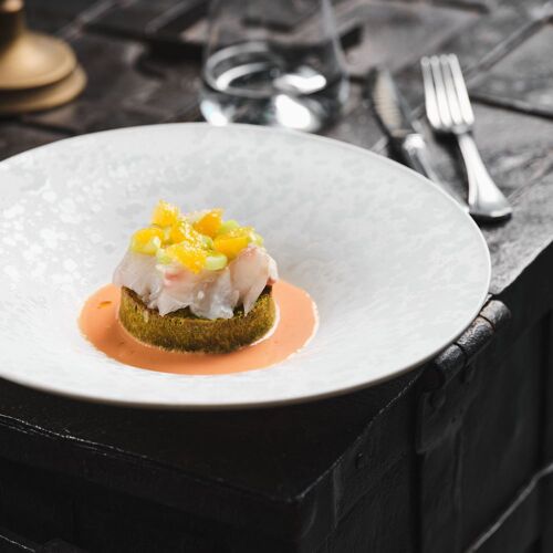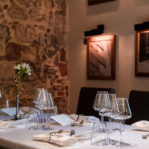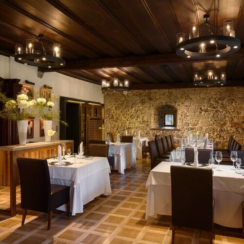 This luxury hotel and restaurant in a spectacular and tranquil location in the middle of the Krka river occupies a charming 13C castle that was demolished and then rebuilt for the purpose. Antiques, a delightful bar with a fireplace and soft comfortable sofas all combine to create the feel of bygone days in the attractive dining room. The cuisine is regional and traditional, featuring carefully prepared dishes and fresh vegetables sourced from the restaurant’s organic kitchen garden. Both the à la carte and the tasting menus follow the seasons. To round off your visit in truly aristocratic style, stay in one of the hotel’s luxurious guestrooms.