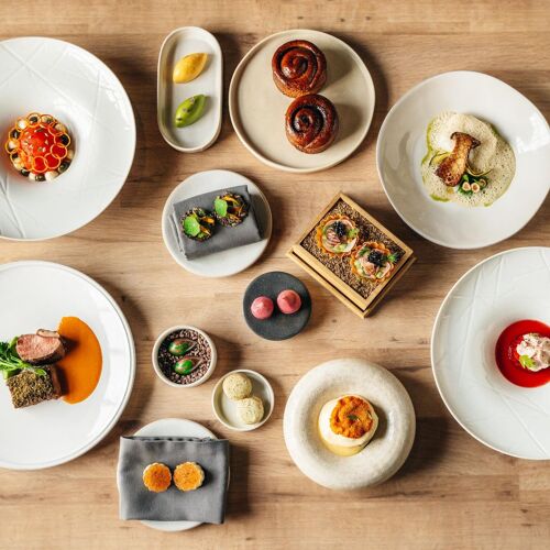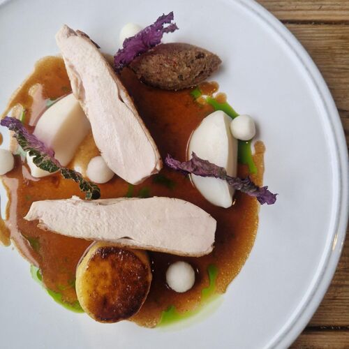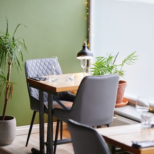 Little Seeds has a bright, fresh, natural look with green walls, foliage and rustic, upcycled furniture. A smattering of cookery books adds to the homely feel – and there’s a walled garden and drinks terrace out the back too. Great quality regional ingredients are used to create eye-catching British dishes with the occasional playful touch. The popular Sunday lunch menu features roast Staffordshire beef.