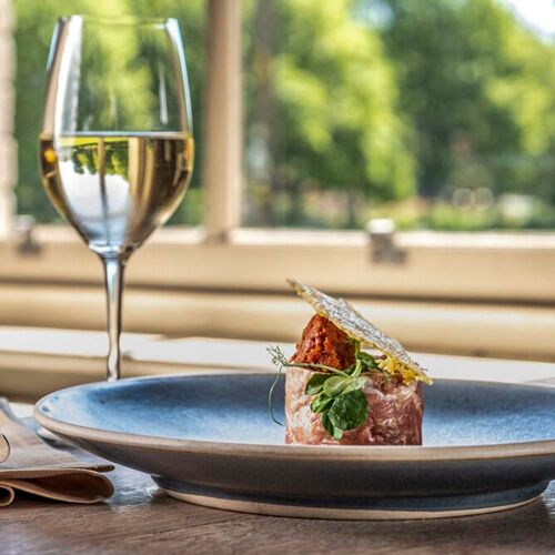 Set near the green in a pretty village, is this smart modern pub named after the 15C flint bridge which spans the river. Understated modern dishes have subtle yet effective flavour combinations and use the best local ingredients. Ultra-stylish bedrooms have plush furnishings and roll-top baths.