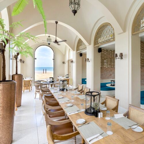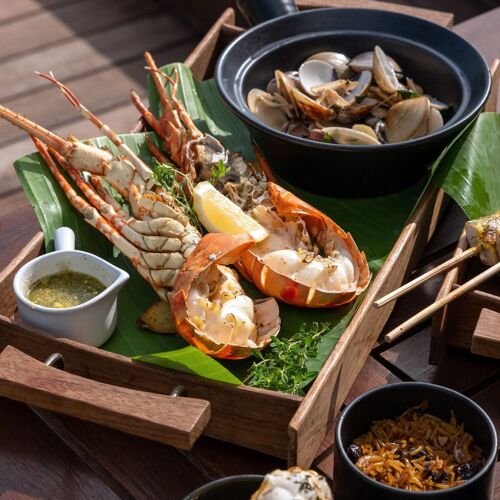 Offering a relaxing setting with indoor and outdoor seating perfect for enjoying cocktails and a delightful mix of Mediterranean dishes, against the backdrop of the evening sunset. Specialising in fresh seafood grilled over a wood-burning stove, the restaurant's standout dish is a seafood pizza with shrimp, squid, mussels, and mozzarella. Complete your dining experience with a delicious dessert like crispy fried bananas served with coconut milk ice cream.