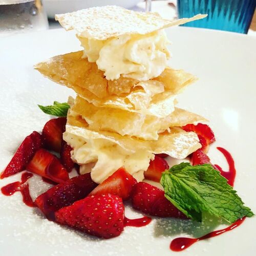 A rustic grotto-style restaurant with a warm and welcoming ambience, where staff are happy to advise you on the seasonal dishes on offer. A whole page of the menu is dedicated to classic favourites, all of which are influenced by Mediterranean cuisine – the veal shank with mashed potato and salted butter is particularly delicious. There’s also a small menu of daily specials which changes according to market availability. The terrace shaded by huge plane trees provides a pleasant setting for summer dining, while an excellent wine list adds to the appeal.