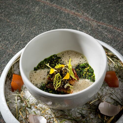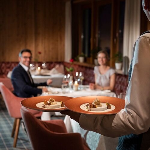 The Alpenhof hotel has created a really inviting space for its diners. The Genießerstube may be a dining option for hotel guests, but having been expertly set apart, it feels like a small restaurant in its own right. Diners take their seats in a cosy, elegant wood-panelled room with just a few tables and enjoy the attentions of an experienced, attentive and well-organised front-of-house team – the chefs occasionally deliver the food themselves. In his three- to six-course set menu, head chef Maximilian Stock draws on excellent produce to create clearly structured and flavourful dishes, such as sliced cabbage with sauerkraut beurre blanc, chives and pomme soufflée. And be sure to sample one of the desserts! Before or after your meal, why not head to the bar?