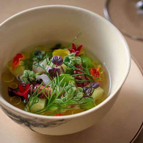 Modern Vietnamese food from a chef trained in French cuisine. Ăn Ði combines seasonal Japanese ingredients with bánh xèo, raw spring rolls and phở to express the four seasons of Japan with Vietnamese cuisine. With a skilled sommelier at the helm, you can also expect perfect pairings that elevate each dish. The emphasis is on wines, but the restaurant also showcases a modern approach to pairing sake and shochu. The restaurant name means '’Bon appétit!’ in Vietnamese.