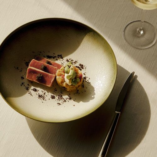 Chef Masakazu Hiraki’s aim is to create Italian dishes showcasing the appeal of Japanese ingredients. His work is a cross-fertilization of the knowledge of Japanese farmers with his own experience in Italy, particularly in the Veneto region. Vegetables and fruit bring lively colour to simple, modern fare. His devotion to the good things of the earth manifests in his restaurant’s name, which means ‘harvest’. The stunning view from his dining room atop a 33-floor building adds to the feeling of spaciousness.