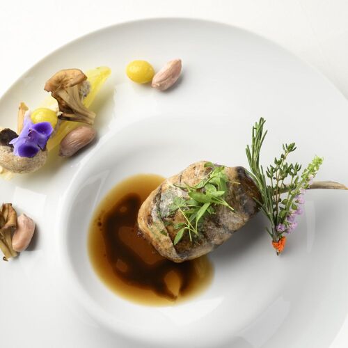 Black, white and orange are the tricolore of ‘Watanabe-ism.’ Black represents faith that cannot be tainted; white, the freedom to become any colour; and orange, the flame manipulated by the chef. On offer here is a fusion of French and Edo food cultures. Sobagaki is emulsified using French techniques; local Japanese elements include kaminari-okoshi, a roasted and flavoured mochi cracker; and monaka, a sweet of azuki bean paste sandwiched between crisp wafers. Watanabe-ism has deep roots in Asakusa-Komagata.