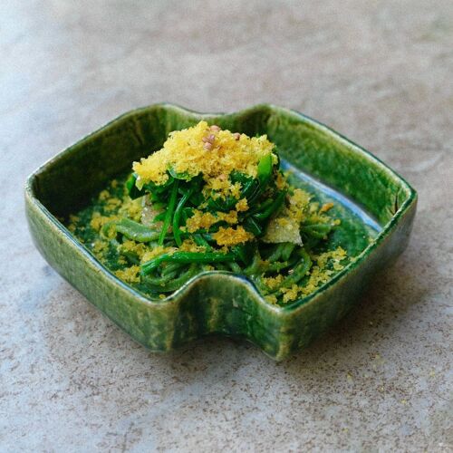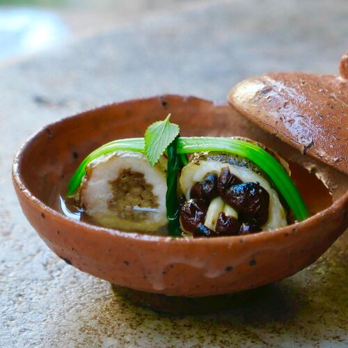 The chef’s culinary journey began with reading a cookbook called ‘Memos on Cooking’. He mixes and matches Japanese and Western ingredients and cooking styles, creating novel flavours. Filtering through his experience in French cuisine, he layers ingredients to create new culinary expressions. In a nod to modern sensibilities, pairings are recommended for marriage with each dish. The roots lie in ‘terroir’ and hometown cooking, in both France and Japan.