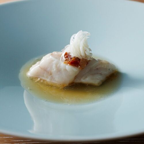 The character for ‘food’ (食) is composed of the components for ‘person’ (人) and ‘good’ (良), signifying the power of food to make a person good. Daisuke Yuasa, who puts great store by the principles of a balanced diet and good food for good health, creates dishes he hopes will support his patrons’ health in both body and soul. Another of his wishes is that food should be fun, so he gained a sommelier qualification to help customers expand their enjoyment.