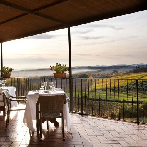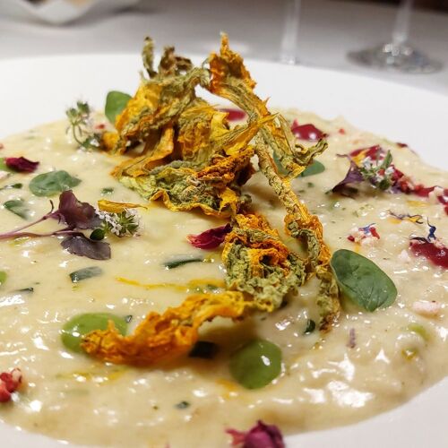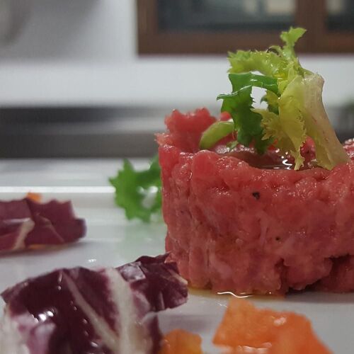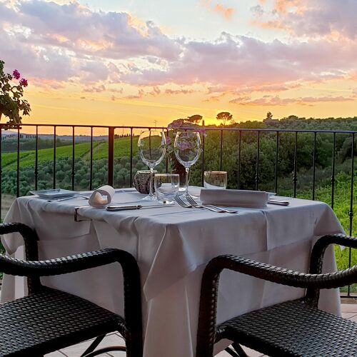 The cuisine is a tribute to Tuscan tradition, with some elegant detours, always guided by the rhythm of the seasons. While the main courses are dominated by an undisputed queen – the Fiorentina steak, regal and magnificent – the handmade pici with guanciale and pecorino are also a must-try. The sunset provides the perfect backdrop, making every dish even more memorable.