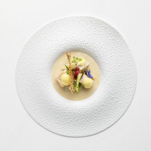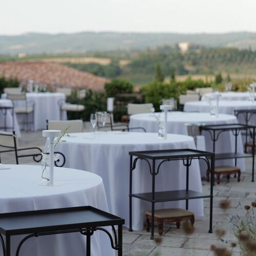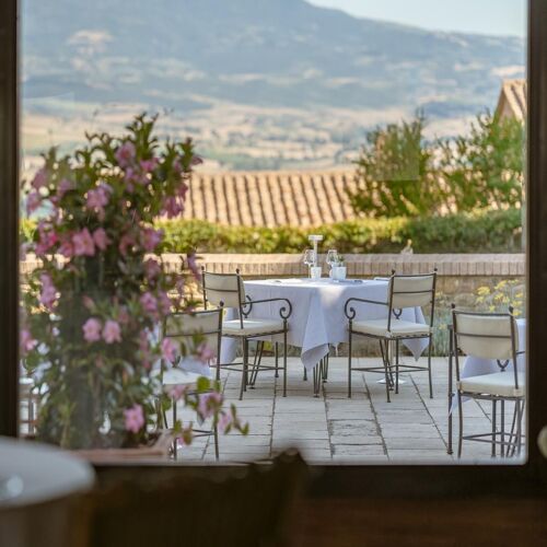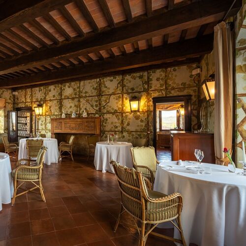 A beautiful drive through typical picture-postcard Tuscan scenery of vineyards, cypress and olive trees takes you to the imposing medieval Castello Banfi, which stands proudly in front of this restaurant. La Sala dei Grappoli takes its name from the vines depicted in frescoes on the walls of its dining room, although in fine weather you’ll want to take advantage of the outdoor terrace where the beautiful views combine with impeccable service and superb cuisine to offer an unforgettable experience. Originally from Puglia, chef Domenico Francone includes Puglian specialities on the menu, such as his taralli and exquisite panzerotti. Despite this, the chef has completely embraced Tuscan cuisine (often from the Maremma) which he interprets with real creativity, adding a personal touch to some of the region’s classic dishes. The wine list includes Castello Banfi’s fine Brunello wines, with recommendations provided by the excellent sommelier.
