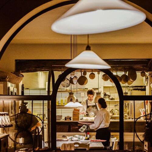 Il Sale stands in a region where the typical hills, cypresses and olive trees of Tuscany meet the sea. The connection between the land and the quality of the cuisine served here is reinforced by the amount of produce grown by the restaurant itself.