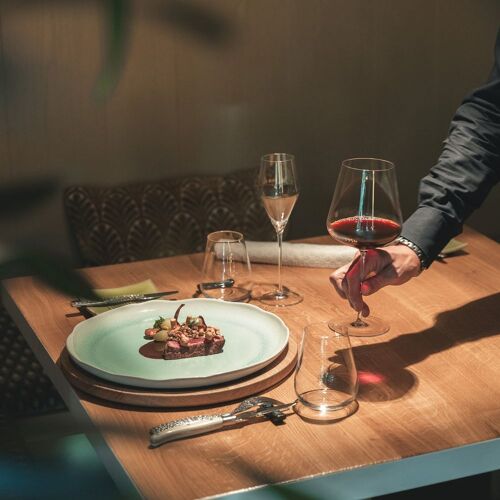 The name of this restaurant refers to the year in which the hotel in which it is located (the Park Hotel Holzner) was opened, while the design is a nod to the Liberty style of the period. Despite this, both the ambience and the cuisine bear the modern and imaginative hallmark of Stephan Zippl. Paying careful attention to sustainability, this chef selects the best regional produce for his dishes – even the Wagyu beef is raised in the chef’s native Renon region. This strong connection with the Alto Adige is also evident on the excellent wine list, which features almost 400 labels from the region and provides perfect pairings for the chef’s tasting menu. Other options include non-alcoholic drinks such as apple juice and alcohol-free cocktails.