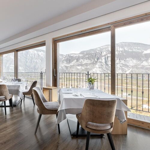 Situated in the northern wine-producing area of Trento, this trattoria is a real highlight, thanks to its delicious, beautifully presented cuisine which is always full of flavour. The menu includes regional dishes as well as more modern specialities (plus a few fish-based options) which can be enjoyed either in the typical dining room or out on the veranda (also open in winter) with its stunning views of the Adige valley.