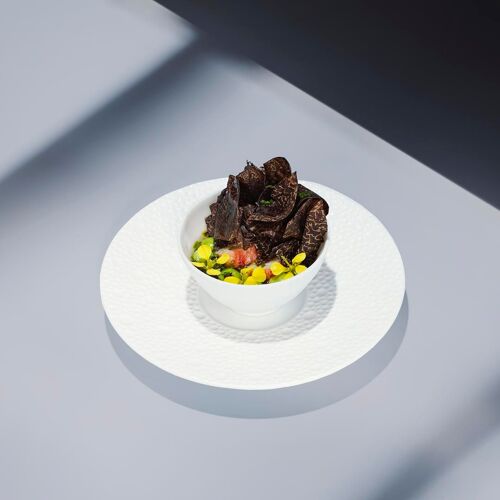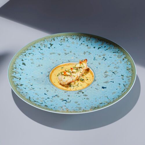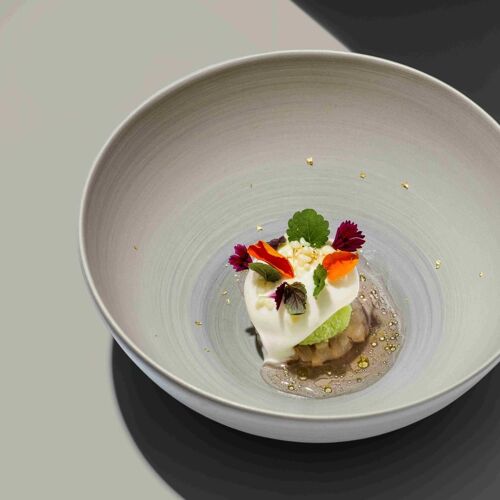 In the sleek and chic restaurant of the luxury hotel The Chedi, at almost 1 500m above sea level, twin brothers Fabio Toffolon and Dominik Sato share responsibilities in the kitchen. Working with first-rate ingredients, they serve up an intriguing blend of Japanese cuisine and classic European influences in the form of a five- or six-course omakase menu. This includes, for example, perfectly cooked premium Norway lobster with a classic hollandaise sauce enhanced with wonderful miso flavours, a lovely citrus note and finely chopped green asparagus – which is one of the two signature dishes that can be added on to the menu or swapped out. The focal point in the restaurant is the open kitchen – take a moment to watch the chefs at work!