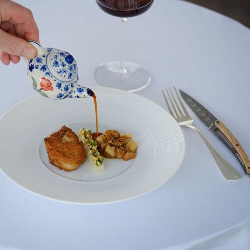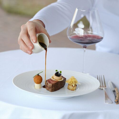 De Nederlanden bears its name well. The decor, the charming service and the culinary style lend this former country hotel a quintessentially Dutch atmosphere. Combining historical charm with contemporary sleekness, this building has plenty of character. It feels like time is standing still as you enjoy an aperitif on a bench with views over the Vecht River and the drawbridge. Pure bliss! It is clear from the menu that chef Wilco Berends loves his terroir: When it comes to produce such as lamb, eel and cheese, rest assured that he will serve you the very best the region has to offer. Be sure to try his oyster dishes – a speciality and a great start to your meal! What follows is the result of a blend of classic expertise and contemporary, playful creativity. This chef has mastered the art of cooking Anjou pigeon to a perfect pink finish, gently confiting the legs and presenting the bird with a visually stunning selection of accompaniments including artichoke, mushrooms and foie gras. The desserts, too, are divine – the delicately sweet tarte Tatin with wonderfully silky vanilla ice cream creates an elegant interplay of hot and cold. For a truly unforgettable experience, be sure to book one of the romantic guestrooms.