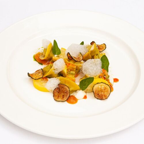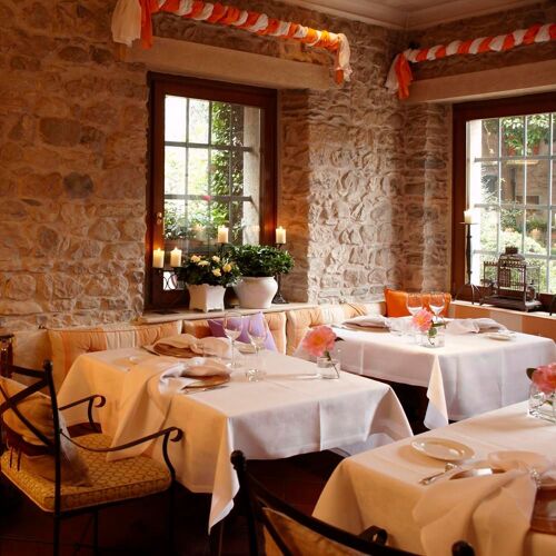 Situated in the luxurious Villa Abbazia hotel, this splendid restaurant boasts a fireplace, frescoes and period decor, as well as an elegant outdoor space for summer dining. Both provide the perfect backdrop for the cuisine prepared by Giuseppe Francica, a young chef who practically grew up in the kitchen here. Served on vegetarian and tasting menus from which dishes can also be chosen individually à la carte style, this chef’s fresh and colourful dishes are made using herbs and vegetables from the property’s own kitchen garden, plus ingredients sourced from trusted local producers. The excellent wine list is particularly strong on Riesling labels. A perfect all-round evening dining experience, with the option of a bistro for more informal meals at lunchtime.