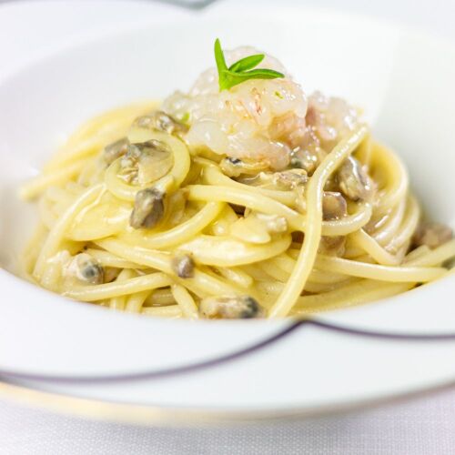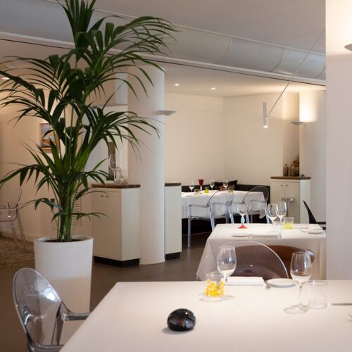 The story of this restaurant began in 1967, when Guido and Giovanna Fasan, both of whom still work front of house, met in Germany. They then moved back to Italy, where they opened Da Guido in the early 1990s. White dominates in the elegant, contemporary-style dining room, while the cuisine features delicious seafood dishes with a focus on grilled specialities. In summer, there’s a welcoming bar in the garden, which boasts a romantic atmosphere. Together with other restaurant-owners from Venice, the Fasan family also have a kitchen garden on the Venetian island of Sant’Erasmo, where they focus on sustainable growing methods.