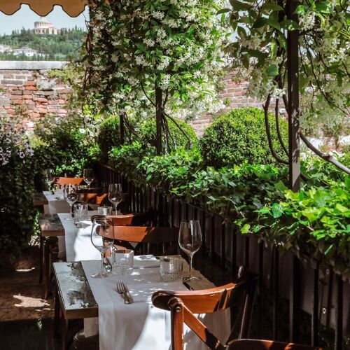 An old building next to the Roman bridge Ponte Pietra, with a couple of romantic small balconies overlooking the river. Charming dining rooms provide the backdrop for regional cuisine with creative touches and a carefully selected wine list. An attractive apartment is also available for anyone wish to extend their stay here.