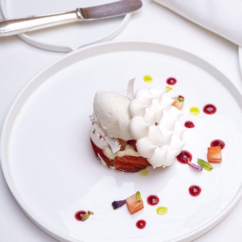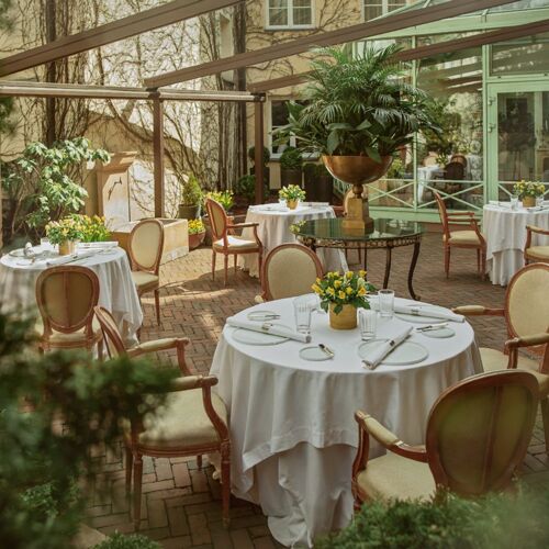 For a comfortingly classical experience, head to the Stikliai Hotel in the heart of the Old Town, where photos of famous faces who have visited over the years line the walls. Nestled within its former courtyard is an elegant, glass-roofed restaurant filled with greenery, where beautifully presented, classical French dishes are a perfect match for the atmosphere. Both the sauces and desserts are a highlight – the Angus steak comes with an intense red wine jus, while the likes of fresh mango and passion fruit with French meringue, coconut ice cream and mascarpone cream linger long in the memory.
