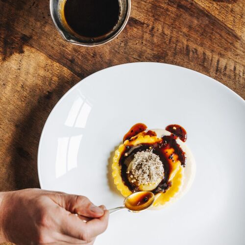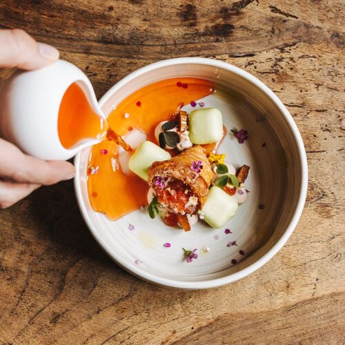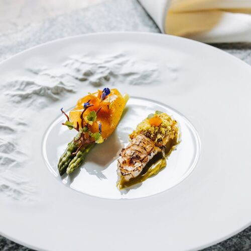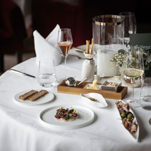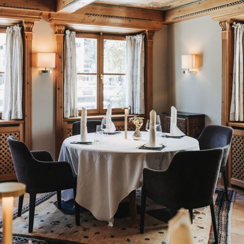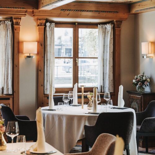 As well as tasteful, individually designed guestrooms, Hotel Arlberg is home to this elegant restaurant, which is accessed via a separate entrance. Ornate details such as warm wood finishings, a partially painted ceiling, shapely upholstered armchairs and classic-style wall lamps create a cosy atmosphere, and this is complemented by the professional and attentive service. Then there is the Alpine-Mediterranean cuisine, which the chefs call "Monte e Mare": made from the finest ingredients, it is served as a tasting menu comprising five to eight courses, also vegetarian. The fantastic wine list, which is predominantly Austrian, Italian and French, includes over 1 000 labels, with around 15 000 bottles stored in the cellar.