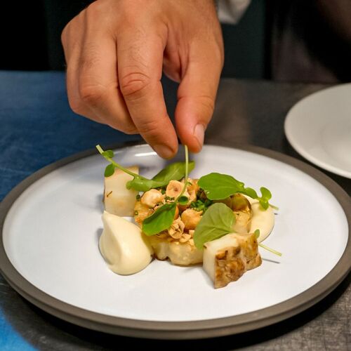 An appealing mixture of the vintage and the contemporary lend a certain stylishness to the décor at this smart brasserie occupying two former shops in the heart of a small market town. The attractive dishes are packed with flavour and make the most of quality British produce, as with delicious, sweet Cornish crab turned into a simple, fresh-tasting tartlet. Sit in the larger room with its comfy banquettes and copper-topped tables, then treat yourself to a stay in one of the characterful bedrooms.