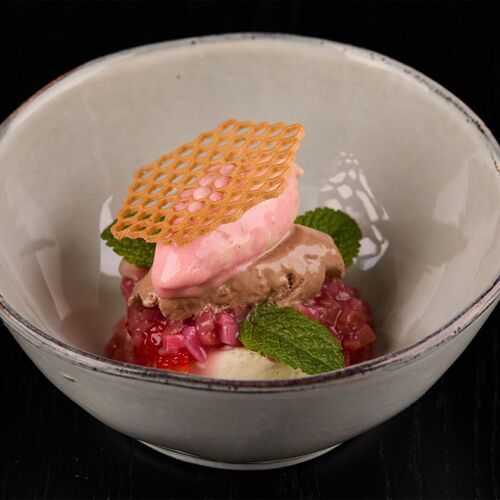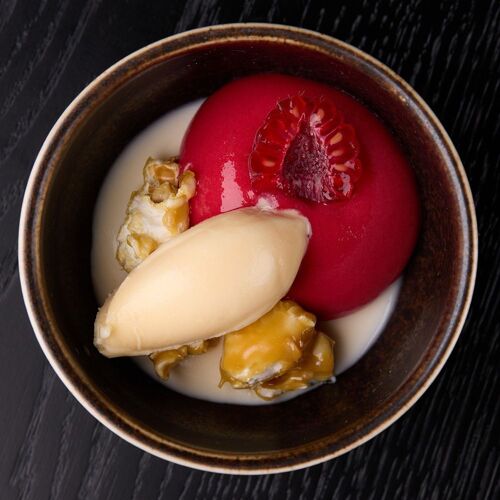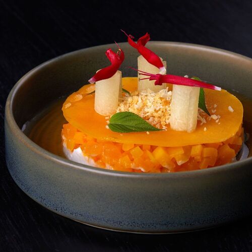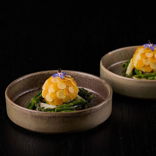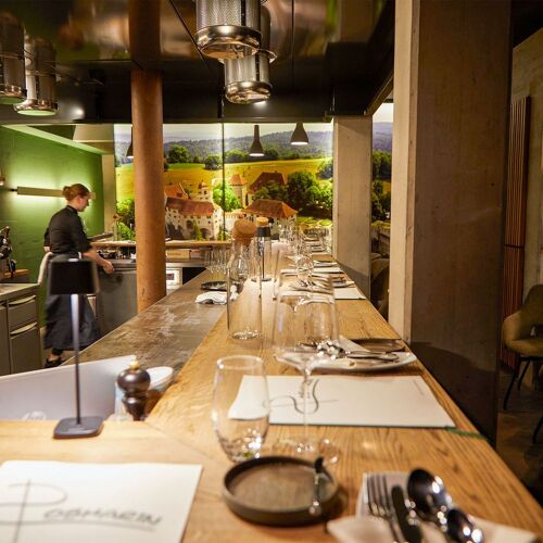 Following its relocation within Lenzburg, Rosmarin entices diners with a cool concept: The modern setting allows for up to 12 guests to sit at a counter right by the open kitchen, where chef-patron Philipp Audolensky prepares a creative surprise menu comprising five to seven courses (vegetarian or vegan options are available by prior arrangement). Appetisers and pastries are prepared by Céline Huber. The tartare of premium Bremgarten salmon trout, enhanced with finely chopped kimchi for juiciness and a gentle spicy kick, and finished with a delicate, intensely aromatic chive mayonnaise, is a fine example of how the bold flavours of exceptional ingredients are put centre stage. The restaurant celebrates the region and is committed to sustainability. The chef himself serves the food and recommends the perfect wine pairings, which adds a charming personal touch to your dining experience. Water, soft drinks and coffee are included in the price. The old vaulted cellar has been beautifully restored to accommodate groups. Tip for motorists: Sandweg multi-storey car park.