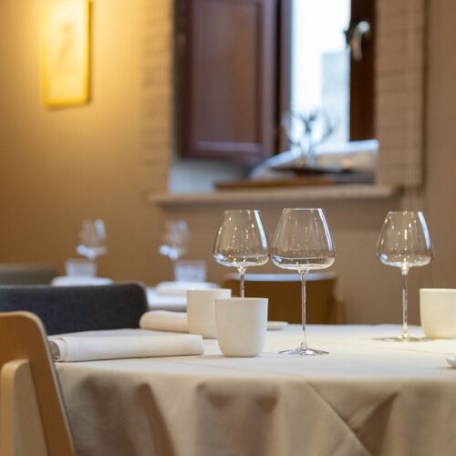 Known throughout Italy for its pillow lace, the small town of Pescocostanzo in the Parco della Maiella is one of the most beautiful in Italy. It is also home to the Relais Ducale hotel and its La Corniola restaurant, which is renowned for its excellent modern Abruzzo cuisine, including delicious, seasonal dishes made from different vegetables, potatoes and onions grown in the hotel’s own kitchen gardens. Simple yet elegant dining room.