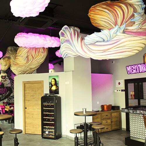 Impressive dragons, imaginary beings from the subconscious and striking clouds of colour provide the backdrop in this highly original, aesthetically focused restaurant. Here, chef Javier Moreno has created a restaurant that is able to reflect his dreamlike world, in so doing fuelling his creativity to the full. His highly personalised cuisine is uncomplicated and without any single culinary attachment, hence the mix of ingredients sourced from far and wide.